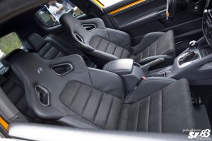 The original seats in the Fahrenheit are quite comfortable (I have the jetta version in my car), but the dynamic duo wanted something a little different, but didn’t want to go the fully reupholstered route. After a little searching, they had decided on Euro Golf R seats, fitted with alcantara centers. Fortunately, the bolsters on the new seats matched the remaining interior, so no additional upholstery work was needed, for now anyway.