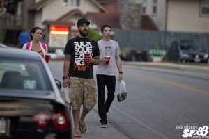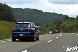 The lower turnout made getting the caravan onto the interstate a bit easier, but the rain and a bit of traffic allowed the cruise to be separated as we left Murfreesboro. By the time we made it to the Chattanooga stop, we had pretty much regrouped. While stopping for fuel and snacks, we gave away a few more prizes, including a few sr83 shirts, some swag from OEMsquared, MF Automotive, Grip Royal and 129Euro, a gift certificate from Borla and two free performance ECU upgrades from APR Tuned.